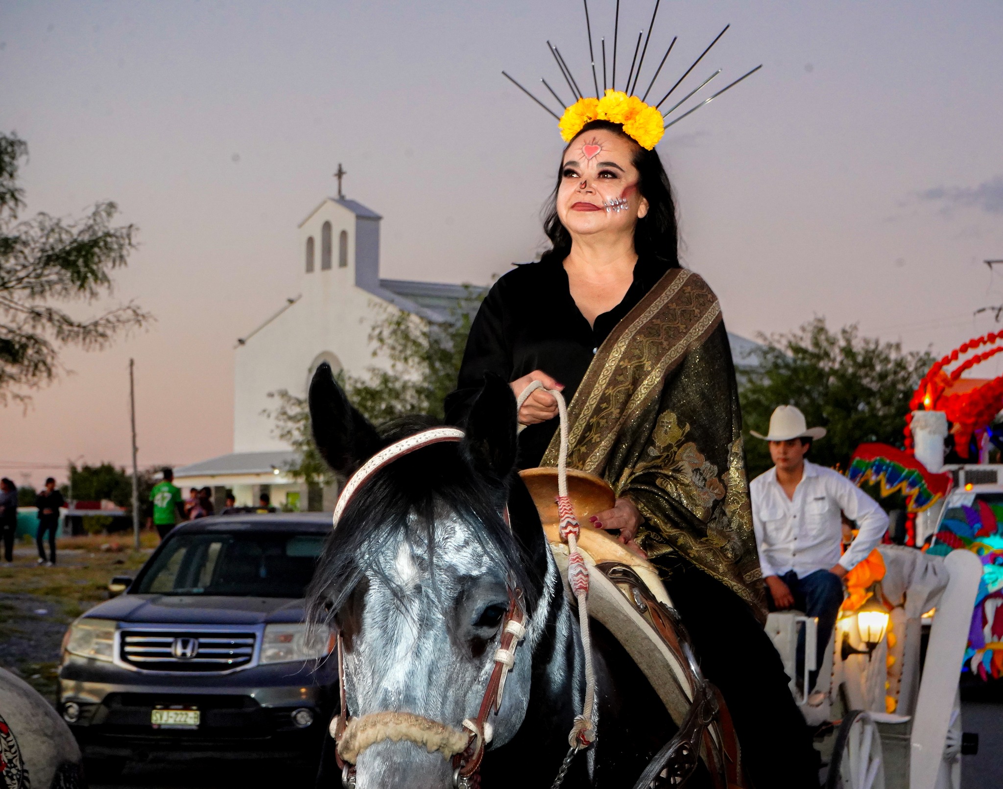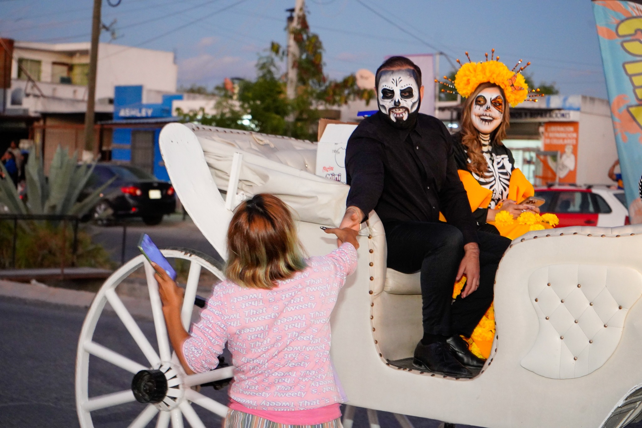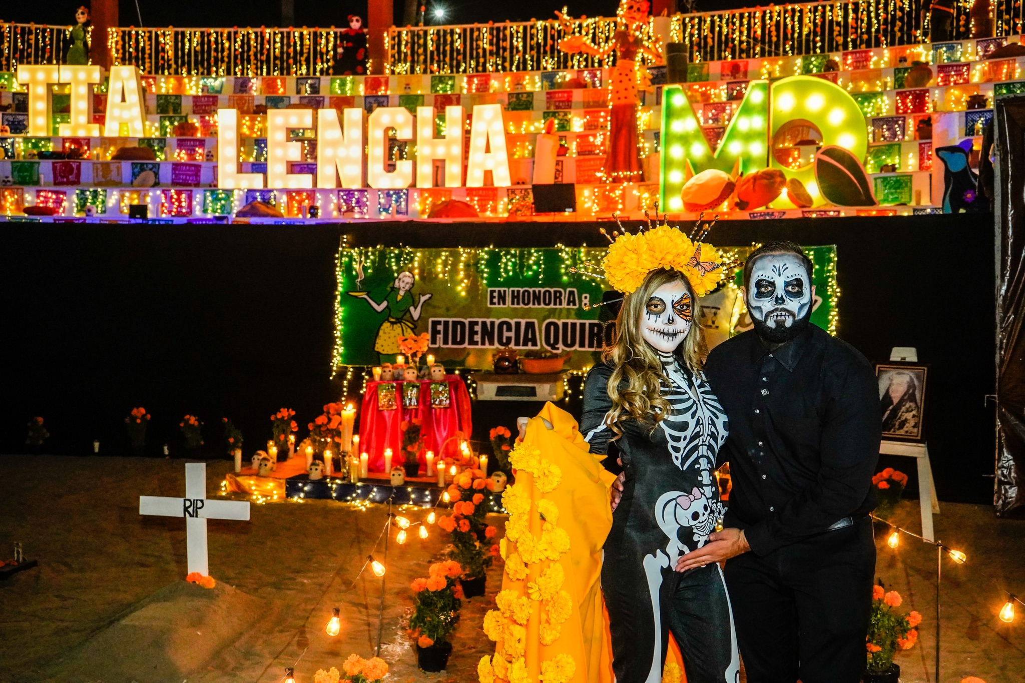 Miguel Quiroga, caracterizado de catrín, convivió con los habitantes y destacó la importancia de preservar las costumbres que nos unen como nación. Por su parte, Perla Cavazos, caracterizada como catrina, compartió un mensaje de orgullo y amor por la cultura mexicana, afirmando: “En México, la muerte se honra y la vida se celebra. Nos pintamos de catrinas para mantener viva nuestra esencia”.