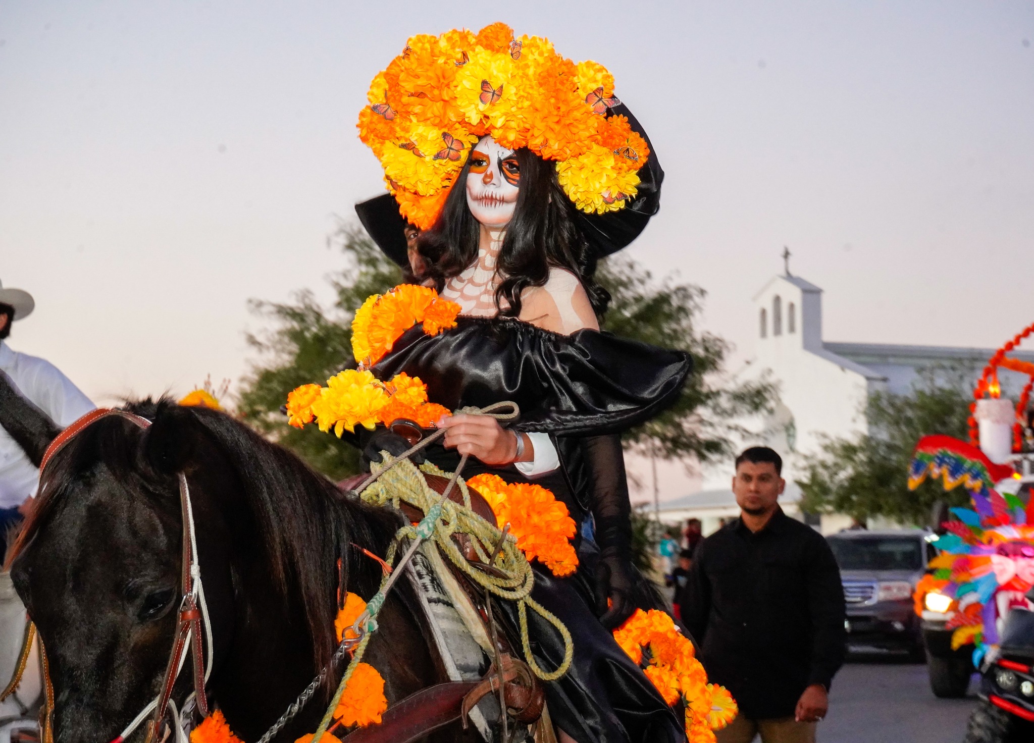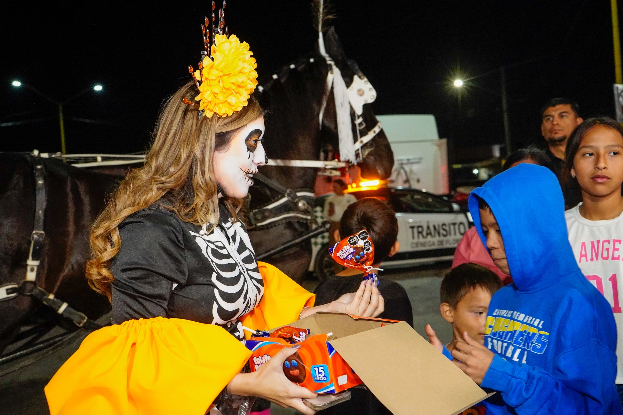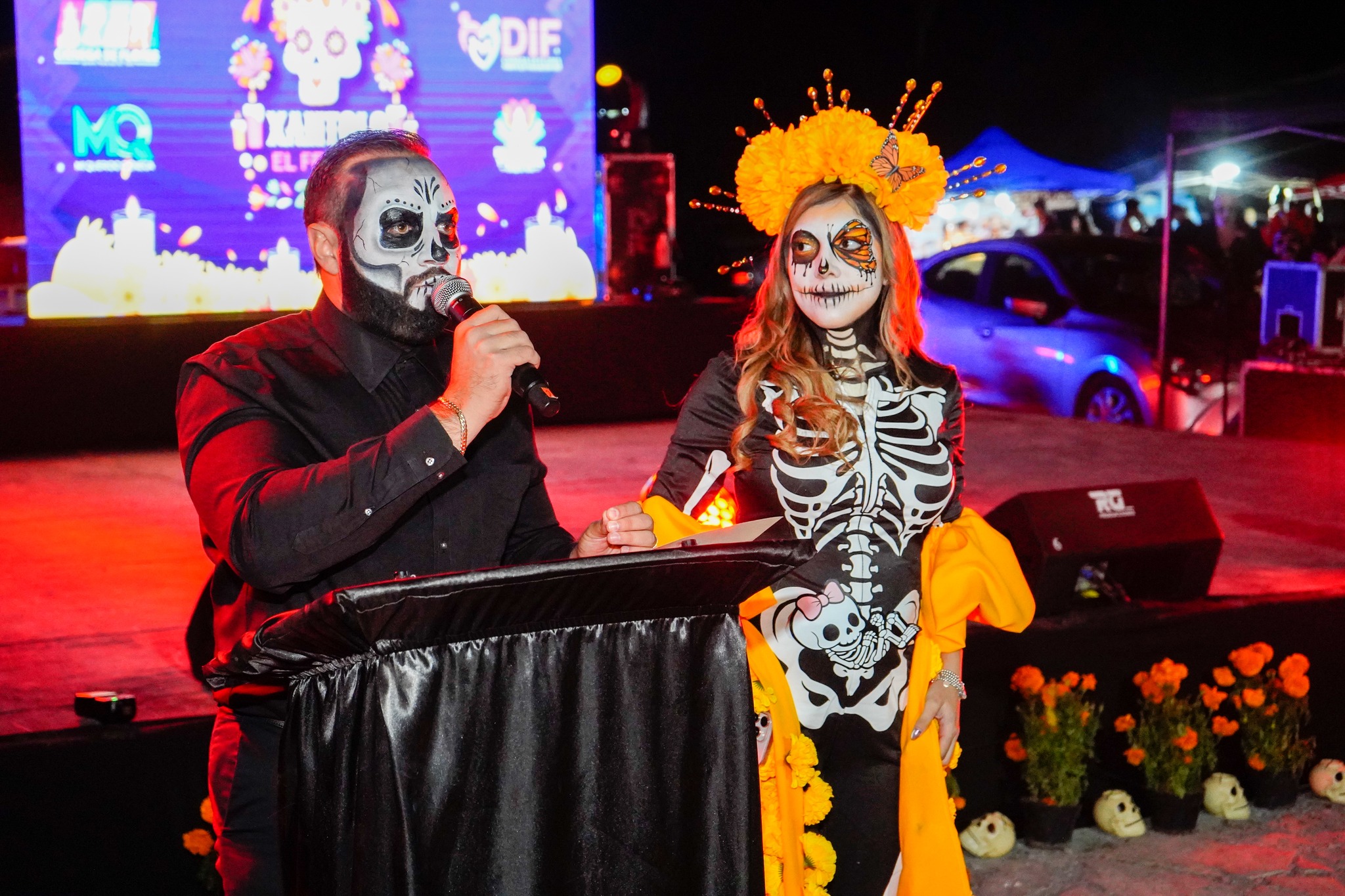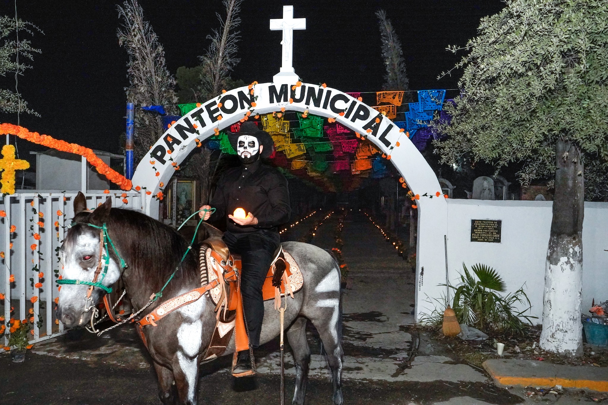 Miguel Quiroga, caracterizado de catrín, convivió con los habitantes y destacó la importancia de preservar las costumbres que nos unen como nación. Por su parte, Perla Cavazos, caracterizada como catrina, compartió un mensaje de orgullo y amor por la cultura mexicana, afirmando: “En México, la muerte se honra y la vida se celebra. Nos pintamos de catrinas para mantener viva nuestra esencia”.
